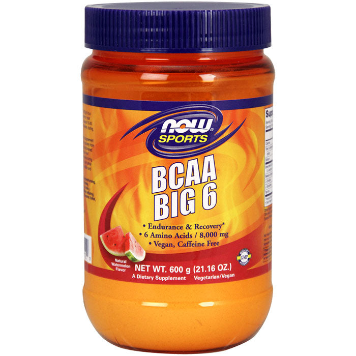 BCAA Big 6 - Natural Watermelon Flavor Powder, 600 g, NOW Foods
