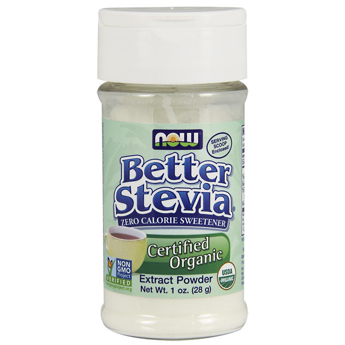 NOW® BetterStevia™ is a zero-calorie, low glycemic, certified organic sweetener that makes a perfectly healthy substitute for table sugar and artificial sweeteners. Unlike chemical sweeteners, NOW® Better Stevia™ contains pure Stevia extract. NOW FOODS takes special measures to preserve Stevia's natural qualities in this unique, pure, better tasting Stevia.