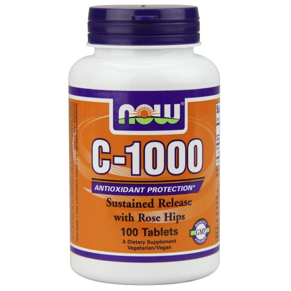 Vitamin C-1000 Sustained Release with Rose Hips, 100 Tablets, NOW Foods