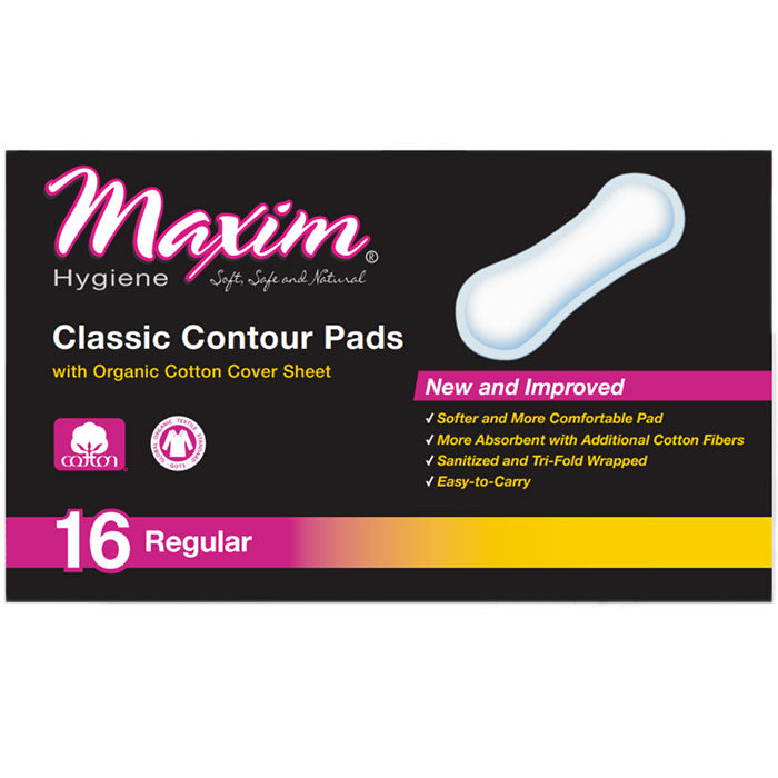 Classic Contour Sanitary Pads with Organic Cotton Cover Sheet, Regular, 16 Count, Maxim Hygiene Products