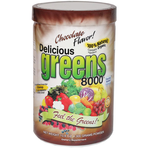 Delicious Greens 8000 is a super vegetable powder drink that doesn't taste like vegetables&it's more like a flavor explosion! Greens 8000 is infused with a variety of exotic fruit flavors like berries, orange blossom, or even chocolate.