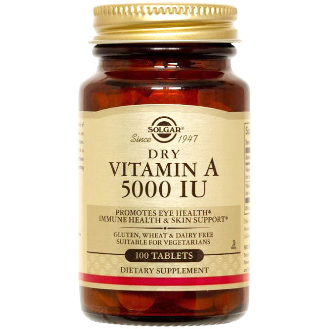 Dry Vitamin A 5,000 IU, 100 Tablets, Solgar