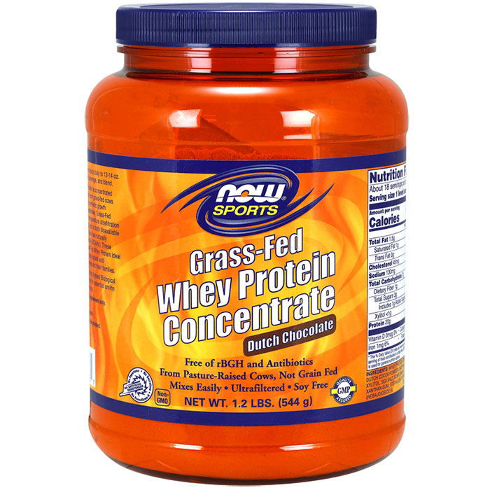 Grass-Fed Whey Protein Concentrate Powder - Dutch Chocolate, 1.2 lb, NOW Foods
