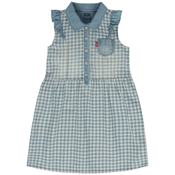 Levi's Girls' Denim Dress, 100% Cotton - Indigo Gingham, Size 2T