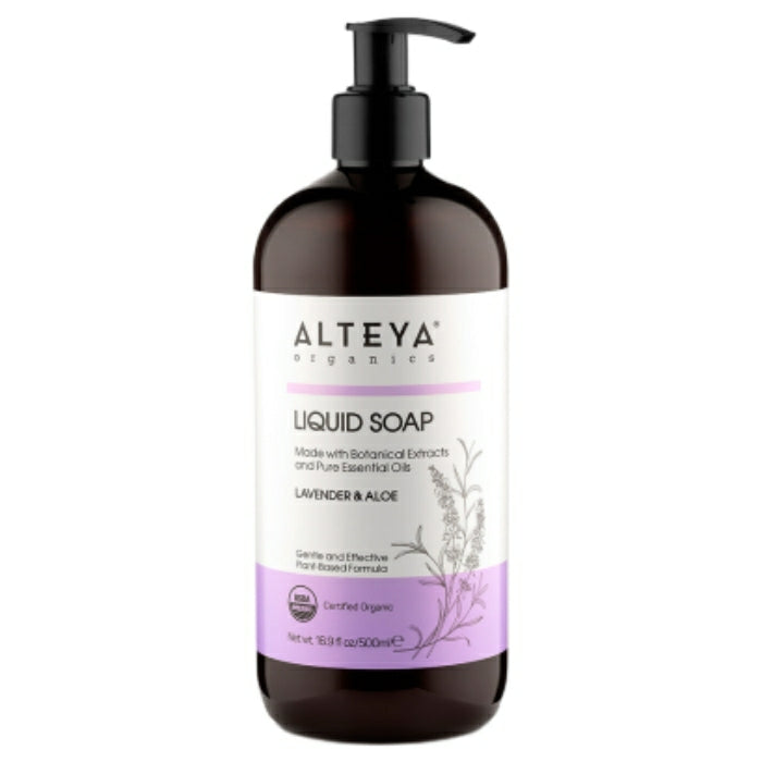 Alteya's Liquid Soap Lavender & Aloe, with its mild formula, gently cleanses skin without over-drying.