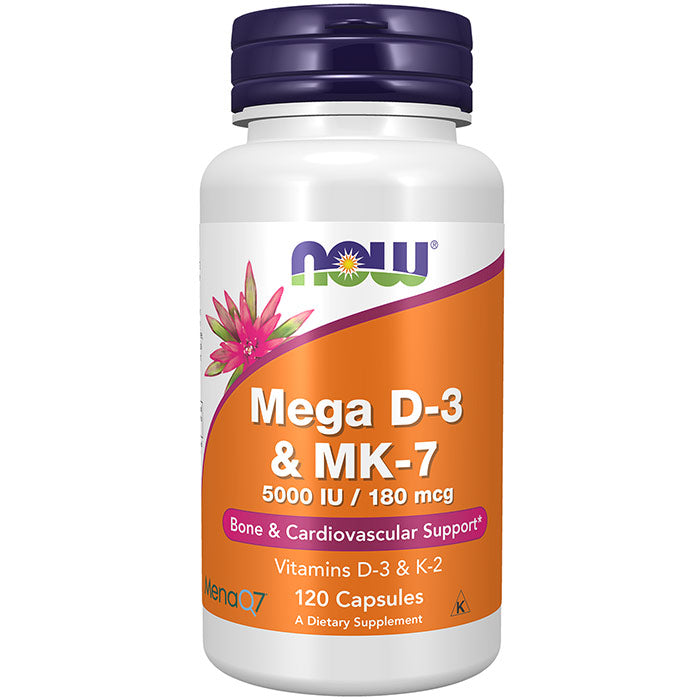 NOW Mega D-3 & MK-7 combines vitamins D-3 and K-2, two nutrients extensively researched for their roles in the health of bones, teeth and the cardiovascular system.