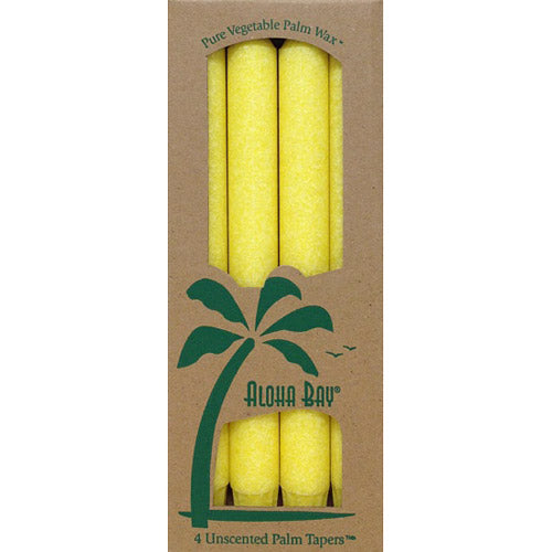 Palm Tapers 9 Inch, Unscented, Yellow, 4 Candles, Aloha Bay