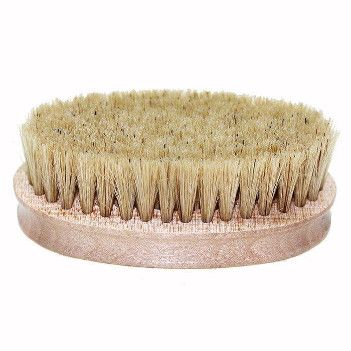This high-quality palm-sized brush features soft boar bristles that are densely packed, making it ideal for toning facial skin. The brush base is solid lotus wood and is varnished to repel moisture.