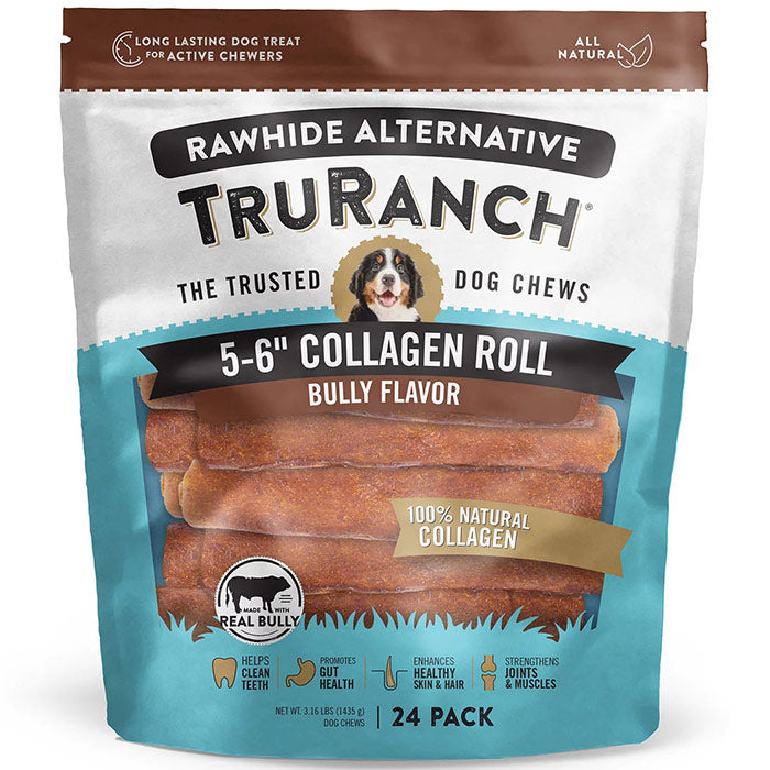 TruRanch 5-6" Collagen Rolls, Bully Flavor Dog Chews, 3.16 lb (24 Pack)