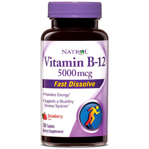 Natrol Vitamin B-12 5000mcg Fast Dissolve delivers high-potency B-12 to boost natural energy levels and support the nervous system. Fast-dissolve is a delivery method that allows vitamin B-12 to quickly dissolve in your mouth and can be swallowed without liquids.