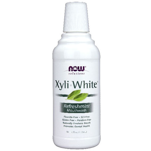 NOW® XyliWhite™ Mouthwash is a safe and effective fluoride-free oral rinse that works in unique ways to help you achieve a smile that's healthier and brighter than ever before! XyliWhite™ Mouthwash gets its cleansing properties from xylitol - a naturally occurring sugar alcohol that has been shown in clinical studies to help promote dental health; effectively rinsing debris from mouth surfaces. Xylitol also helps safeguard healthy tooth enamel surfaces. By preventing the mouth's pH levels from falling below their normal range, XyliWhite™ Mouthwash protects the enamel surface of teeth.